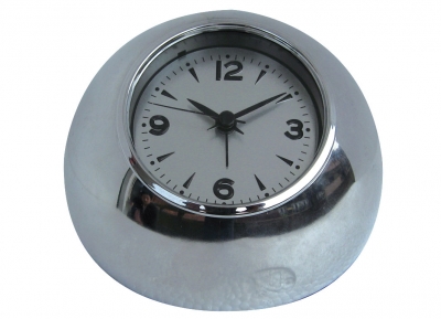 Orologio sveglia con suono elettronico-modello mezza palla color argento.