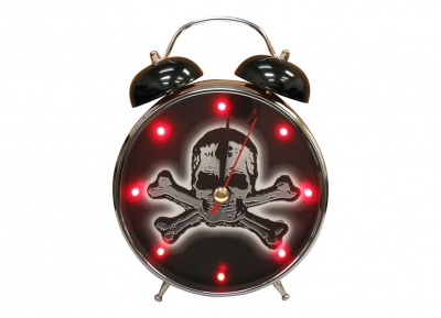 Sveglia da tavolo con gancio da muro-cromata sfondo nero-suono terror e luci rosse ad intermittenza