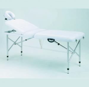 Lettino portatile in alluminio ed altezza variabile con schienale regolabile e poggiatesta flessibile. Materassino in skay bianco. Pu essere chiuso a valigia per facilitarne il trasporto. Caratteristiche tecniche Dimensioni: 185 x 63 x h 69/85 cm. Peso: 15 kg.