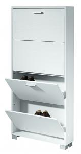 Scarpiera singola 4 ante a ribalta - fianchi e top a vista sp. mm.20 - bordati PVC senza angolo vivo - apertura sincronizzata tramite barre di acciaio - piedini e maniglie verniciati cromo platinato. MOBILE MONTATO.