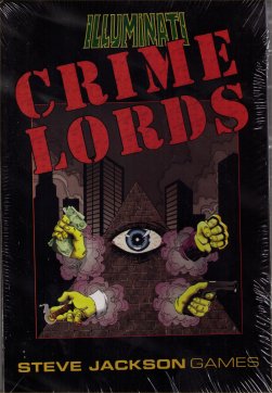 Rival mobs battle for control of the city. Take over the rackets, rake in the dough, and rub out the opposition. It's the American dream. You'll start with a few gangsters and some cash. Recruit more crooks and take control of income-producing operations like bordellos, chop shops, and loan sharks. The police and the Feds are after you, but your biggest threats are your fellow mob bosses. Scheme, negotiate, back stab. You can share a victory, but it's much more satisfying to say "There can be only one Boss. And it's me." Crime Lords is based on the Illuminati system. It's not a supplement, but a separate stand-alone game created by Steve Jackson. Boxed game with 112 cards, rules, die-cut money and status counters, and dice. Illustrated by Dan Smith.