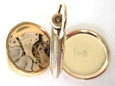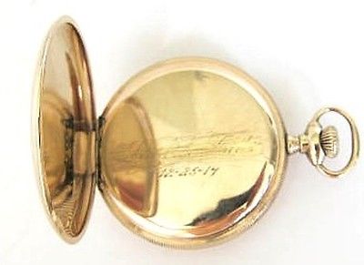 The 14K goldfill hunter case is provided by Keystone/Jboss guaranteed 25 years,condition of the case is very good but the engraving of previous owner name on the dust lid has been removed and there are visible scratch marks(please see picture #8),the date of the engraving remains as 12-25-14.