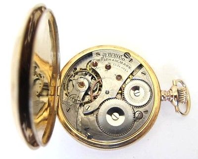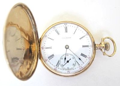 14K solid gold pocket watch with hunter case,made by Waltham watch co,size is 16 ,15 jewels,sets time,wind and run.