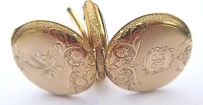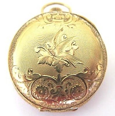 Both sides of this 14K gold case is nicely etched with floral decor,one side has a 'SG' cartouche and the other side has a small etched BIRD, gold is shiny and full of lustre..