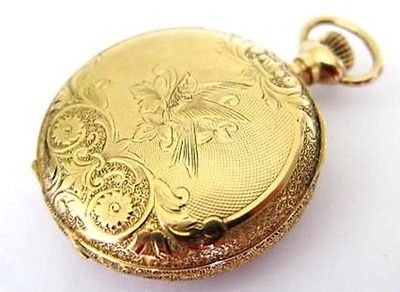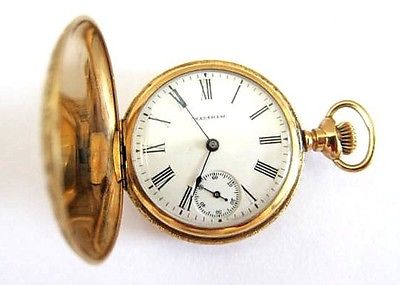 Antique 14k solid gold pocket watch by Waltham Watch Co, serial number 12296683,size o,7 jewels,1891.