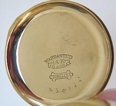 The 14K gold hunter case is provided by B.W.C Co,warranted 14K US Assay serial number 6214441.