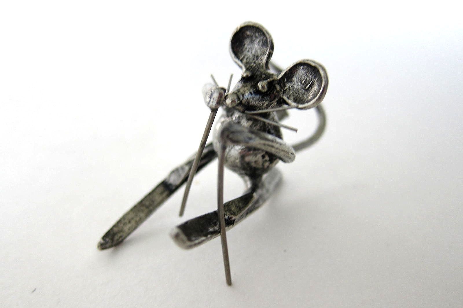2 by 2 1/2 inches,solid piece signed ,this mouse is a downhill racer,M Laude is well known artist in France,he has handcasted many animals and figurines in his studio,Don Quixote is one of his famous one.