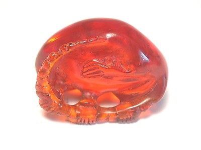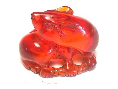 Japanese amber netsuke-recumbrant MOUSE ,signed