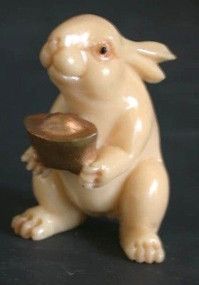 Japanese netsuke - A Good Rabbit Offers U Gold Nugget
