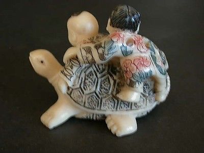 Japanese netsuke - Boy & Girl ride Turtle,double gourd