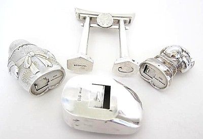 Total weight of these figural s/p shakers is 73.4 grams,three are marked 950,the other marked sterling could be 950 as well,so it is a nice collection of decorative pieces to grace your shelf or dining table,you can use them as salt,pepper shakers,mix and match.