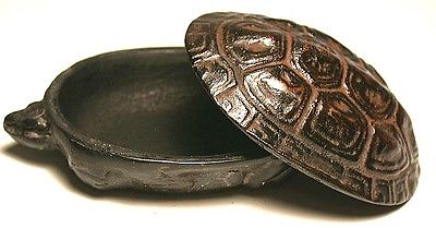 A solid bronze turtle box,2 1/2 inches long,1 5/8 inches wide ,enough to store pills,trinklets.rather heavy for its size.great condition.