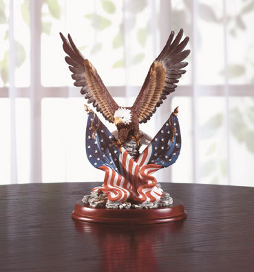 32419 Symbols of democracy and freedom come together in patriotic display on this alabastrite statue. Wood base. 7" x 4 1/4" x 9 3/8" high.