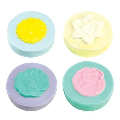 Colorful soaps feature pretty pressed flower designs and a light, refreshing fragrance. The ideal dress-up for any bathroom counter; perfect for use as guest soaps, or for everyday enjoyment! Weight 4.6 lbs. Each is 2 1/4 diameter x 5/8" thick; display unit: 12 1/4" x 11" x 7 1/4" high. Each, sold in a pack of 32. UPC#6137116033.