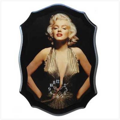 The timeless beauty and grace of the legendary Marilyn Monroe takes center stage on this utterly stunning decorative clock. Shown here in a gorgeous golden gown and sultry pose, this lovely lady keeps the time in true glamour-girl style. A shining jewel that every collector is sure to display with pride! Quartz clock; China movement. Weight 3.5 lbs. MDF wood. One AA battery not included. 15 1/2" x 1/2" x 21 1/2" high.