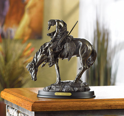 31044 The classic statue "The End of the Trail'' recreated in bronze-finish alabastrite and hand painted. Liberty Bronze Collection. 8 1/2" x 4 1/2" x 11" high.