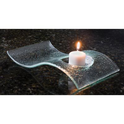 Contemporary curved glass tealight holder is a miniature modern art masterpiece that's perfect for your living space! Textured glass provides the perfect counterpoint for a candle's dancing flame, capturing the light and turning it into a thousand glittering points. An elegantly understated focus piece for any sophisticated surrounding! 9 1/2" x 5 1/2" x ? high. Glass. Tealight candle not included.