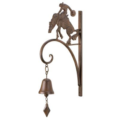Add a little wild west flavor to your living space with this wall-mount bell decoration! Authentic distressed finish and bucking bronco figurine give this adornment the appeal of a well-weathered ranch house classic.