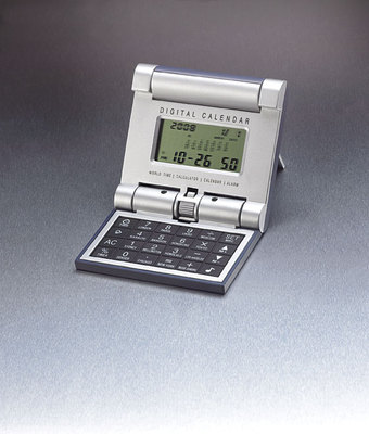 34212 This digital clock will tell time in 16 different time zones, and also features a calendar, an alarm clock, and a built-in calculator. Includes 2 L1131 batteries. 3 1/2" x 3 1/2" x 3/4" high.