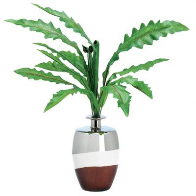 Enjoy the beauty of lush greenery but skip the messy upkeep! Lifelike fabric plant in its own elegant vase is perfect for home or office, adding a touch of the tropics to liven any setting. Weight 2.4 lbs. 6" diameter x 23" high; vase is 9" high. Faux plant and ceramic vase.