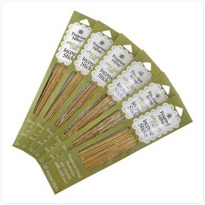 Juicy apples and spicy cinnamon fill the air with holiday fragrance, bringing to mind your favorite treats. A fresh alternative to traditional incense scents! Each stick is 10" long. Weight 0.4 lb. Contains 20 incense sticks per box. each, sold in a pack of 6. Each pack is 2 3/8" x 11 3/4" high.