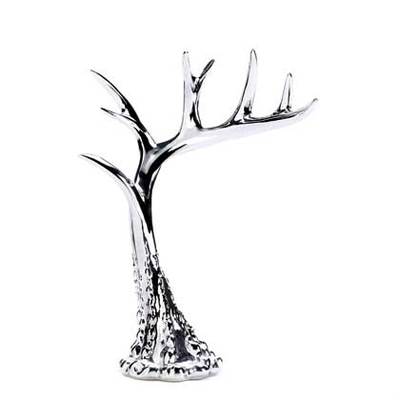 Finished in a gleaming silvery finish, this dramatic jewelry holder garners as much attention as the jewels you drape on it! This striking and contemporary stand has multiple prongs that await your necklaces, bracelets, rings and earrings. Velvet Lining at bottom.