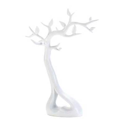 Love springs eternal as two trees merge into one and burst with budding leaves. Finished in high-gloss white, this modern jewelry stand is an artistic way to display your jewelry when you're not wearing it. Hang your favorite necklaces, rings, earrings, and bracelets from the lively leaves and enjoy. Velvet Lining on bottom.