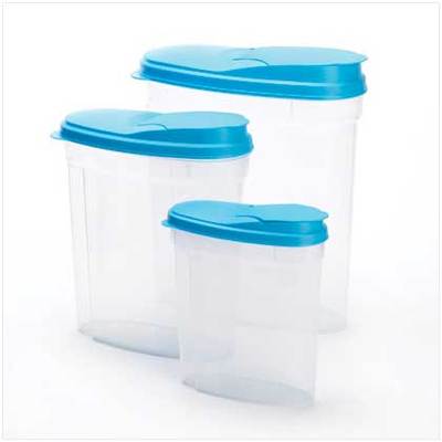 Stop throwing away those cereals, pastas and other dry goods! These roomy containers cut your food bill and keep your favorite foods fresh and delicious. A smart addition for any money-wise family! Weight 1.4 lbs. Large: 11" x 5" x 11 1/4" high; medium: 8 3/4" x 4 1/8" x 9 1/2" high; small: 6 3/4" x 3 1/4" x 7" high. Plastic. Hand wash only.