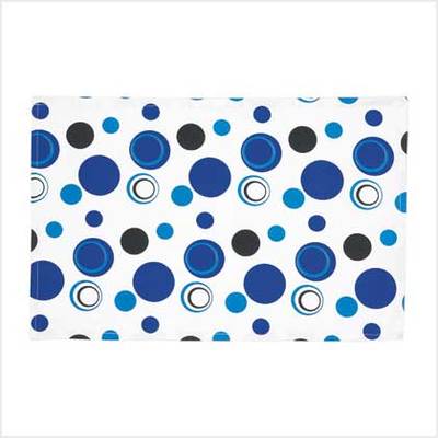 38875 Refreshing pop-art patterns bring a frisky feeling of retro fun to mealtimes! Bold circles of blue and black float merrily against a bright-white field, recalling the carefree modern art of the 1960's. 100% cotton. Hand wash. Each mat is 19 1/2" x 13" high. Set of 4