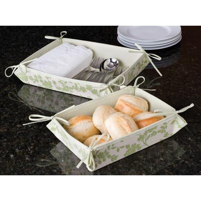 Every household has a thousand uses for these handy, yet handsome storage trays! Perfect for serving a crowd-sized buffet, organizing everyday essentials or even a pretty way to straighten out your jewelry drawer in a snap. Pretty leaf-print fabric provides a bright, breezy look; when not in use, just fold them flat and tuck them away 'til you need them again. Large: 12" x 9" x 2 1/2" high; small: 9" x 7" x 2 1/2" high.