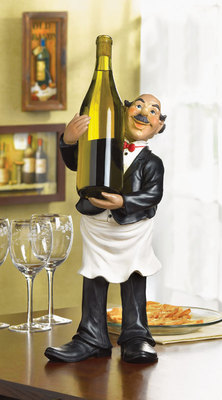 37117 Add mirth and merriment to your next soiree with this delightful wine holder! This charming garson securely supports your best bottle of wine and is sure to be an instant conversation starter! Alabastrite. 7 5/8" x 6 1/2" x 17 3/4" high.