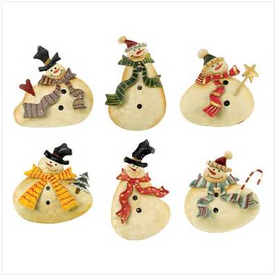 Add a little holiday cheer to a fridge, locker, car or any metal surface! Whimsical cutout metal snowmen feature colorful hand-painted designs and powerful magnetic backs for instant seasonal spirit. Six each of six different designs. Weight 0.8 lb. Metal and magnet. Metal easel-back display unit included. each, sold in a pack of 36. Each is approximately 2 1/2" x 2 1/2" high. Display unit is 7 3/4" x 12 1/2" high.