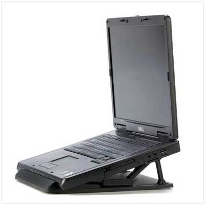 At last - a portable laptop desk that adjusts to your ergonomic level! 360 degree rotating base and seven different angle adjustments let you customize your workstation to fit your style. Elevated base allows air flow to keep your laptop cool; nonskid bottom holds your computer securely. Weight 1 lb. 10" x 10 7/8" x 1" thick. Plastic. Laptop not included. 10" x 10 7/8" x 1" thick. Plastic.