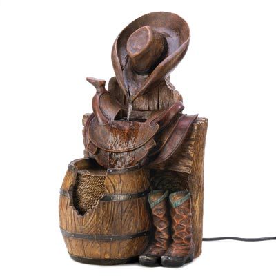 Hat, saddle, barrel and boots - here is a fountain with western roots! Sit back and relax at the end of a hard day's ride as the water gently flows.