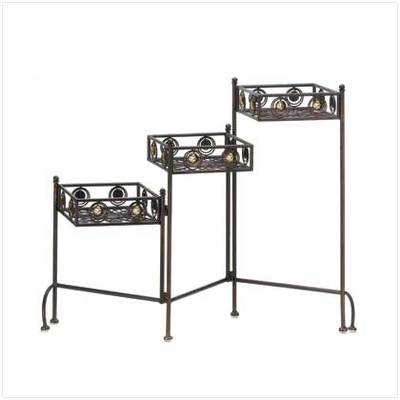 You've got just the right spot for this fabulous folding plant stand! Graceful swirling metalwork and gleaming leopard gems create a theatrical showcase for your favorite greenery or collectibles. Folding design allows you to customize the display however you please. Weight 6 lbs. Folded: 8 1/2" square x 24" high; open to 26" wide. Iron. Plants not included.