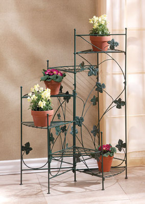 34764 Ivy-motif plant stand with six shelves. Green metal. 22 1/4" x 22 1/2" x 38 1/2" high. Exclusive.