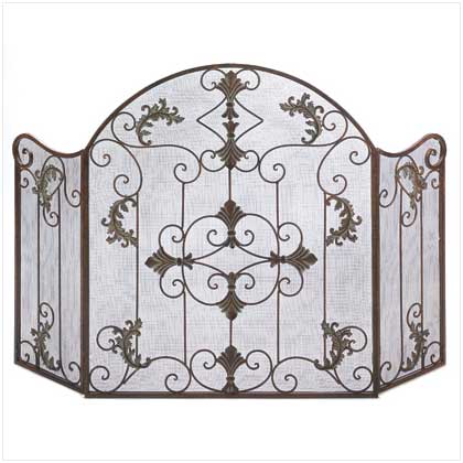 A warm, rustic finish and ornate scroll work give this metal screen the