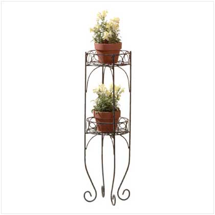 stand. A graceful addition for indoors or out; shelves securely hold two