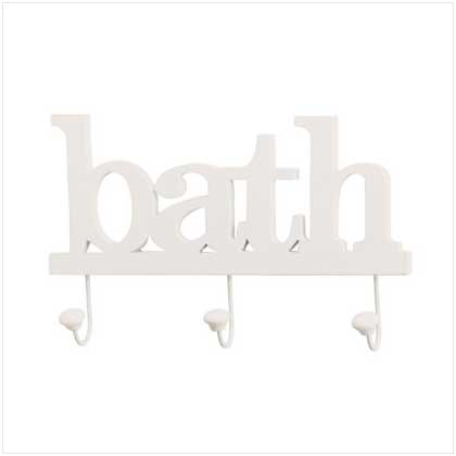 towel hanger that tells you exactly where it needs to be! Wood. Measures: 12 3/4" x 1 3/4" x 8" high.