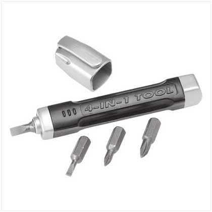 Hollow handle contains four screwdriver bits (Flat-head 3.0 and 4.5 and