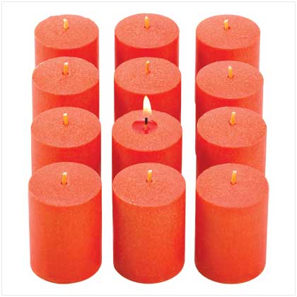 Weight 1.2 lbs. Paraffin wax. Set: 6 1/2; x 4 3/4; x 2 1/4; high; each votive is 1 1/2; diameter x 2; high. Set of 12