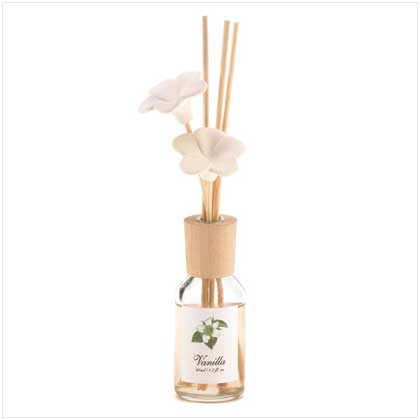ceramic, and wooden reeds. 1 3/4 diameter x 8 3/8 high with reeds.