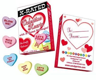 TIRED OF THE SAME OLD: BE MINE VALENTINE MESSAGES? Be the first on your block to get Valentine Candy with X-Rated and Risque Messages! And, we mean X-Rated! And, Risque! Hot enough to ignite a little romance in the hearts of your loving customers! Our attractively boxed, bagged or individually wrapped candy is just what you need!