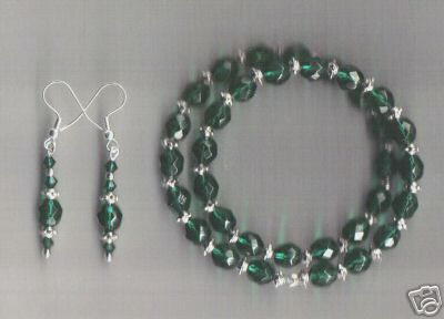 Emerald is not only the birthstone for May, it represents the Heart Chakra. It is believed that it can bring loving emotions and attract unconditional love. This dazzling set is made of 8mm Czech glass Crystals. The bracelet is double strand memory wire and will fit any wrist. The earrings are 2 inches from the top of the ear wire. They are adorned with 4mm Swarovski Crystals for extra sparkle. This Set is a must for anyone born in May or anyone who needs a little help with their Heart Chakra. All of my jewelry is hand-crafted by me in a Purified, Spiritual environment. Each purchase comes with FREE shipping and a FREE gift bag. Orders are sent via First Class Mail the day after I receive payment.