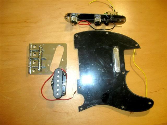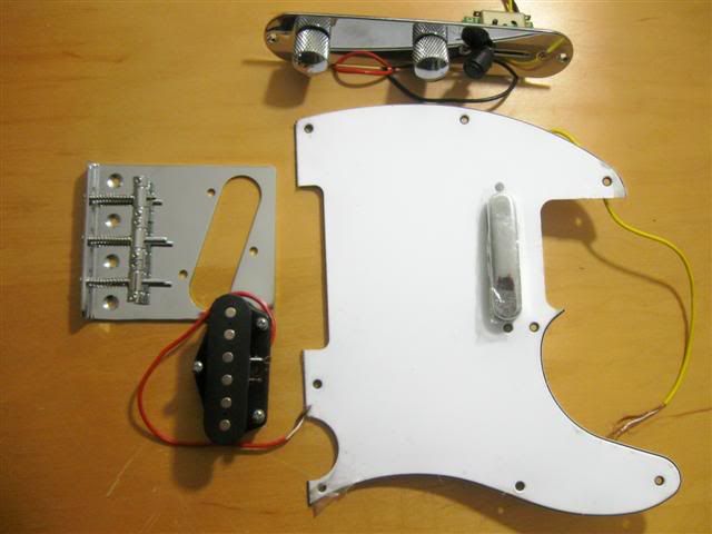 I've personally used this piece on dozens of Tele style guitars- Heavy steel with gorgeous TRIPLE CHROME PLATING. Really a nice quality piece. 3 – way alpha switch, cap, chrome knobs pots.... 3 wire. Simply solder + / - to input jack and your ground attached to your bridge plate. Everything you need to finish off your custom tele.