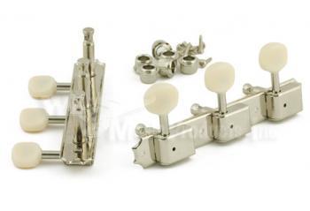 Kluson replacement for Gibson Melody Maker, Les Paul,Les Paul jr., SG. Key dimensions- total center to center distance of all 3 posts- 2 3/4 in., center to center distance between posts - 1 3/8 in., length of baseplate- 4 1/4 in., post height- 1 in., drilled post, single hole, post dia. 6 mm (.236 in.) This is a complete set and comes with both left and ride side tuners. Also comes complete with bushings and mounting screws. |