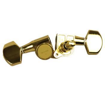 Gotoh 3 on a side, sealed die cast, locking tuners in Gold. |