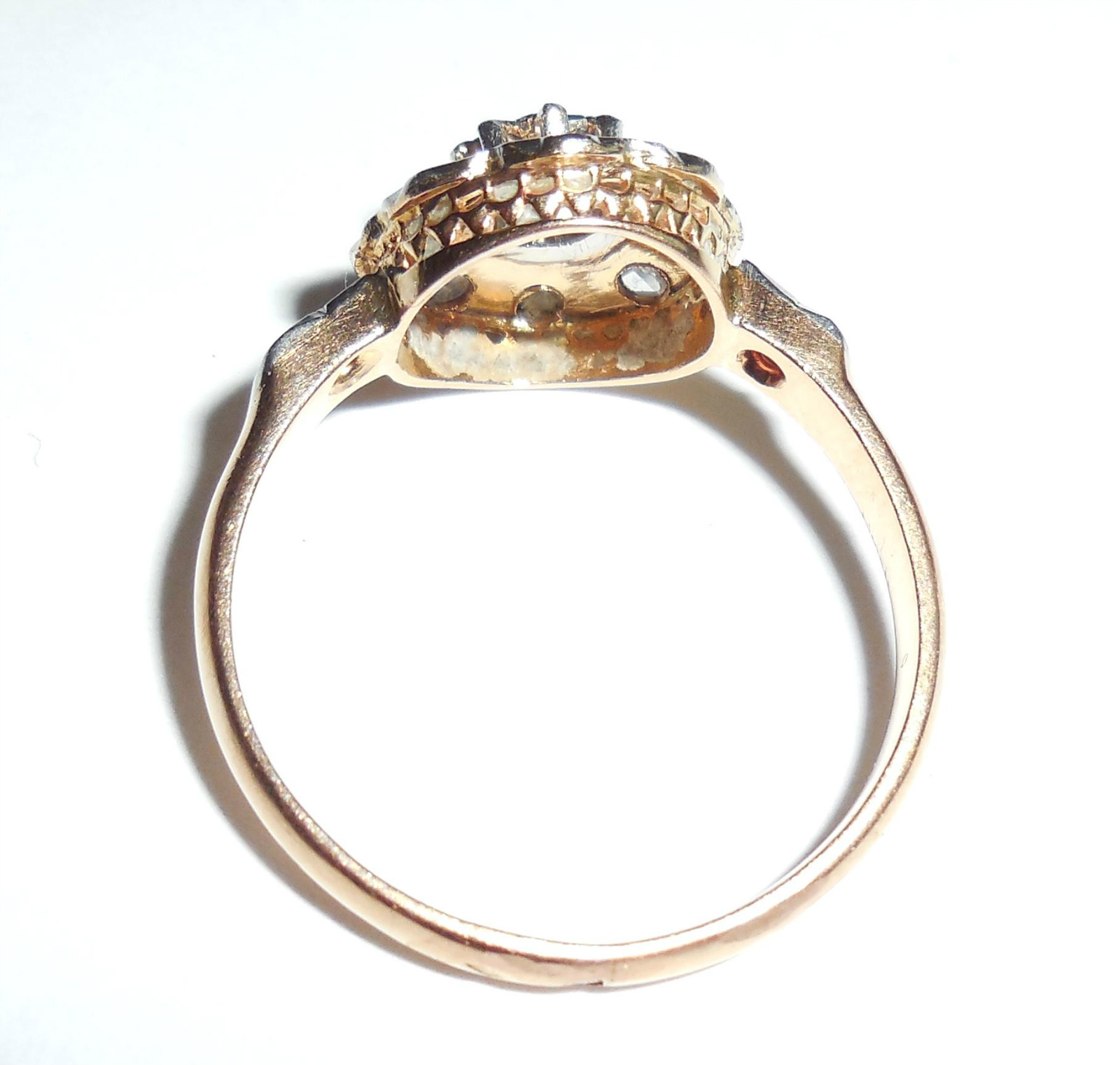 is very intricate and detailed. Size of top is 7/16" across. A gorgeous early rose cut diamonds antique statement ring for your collection.