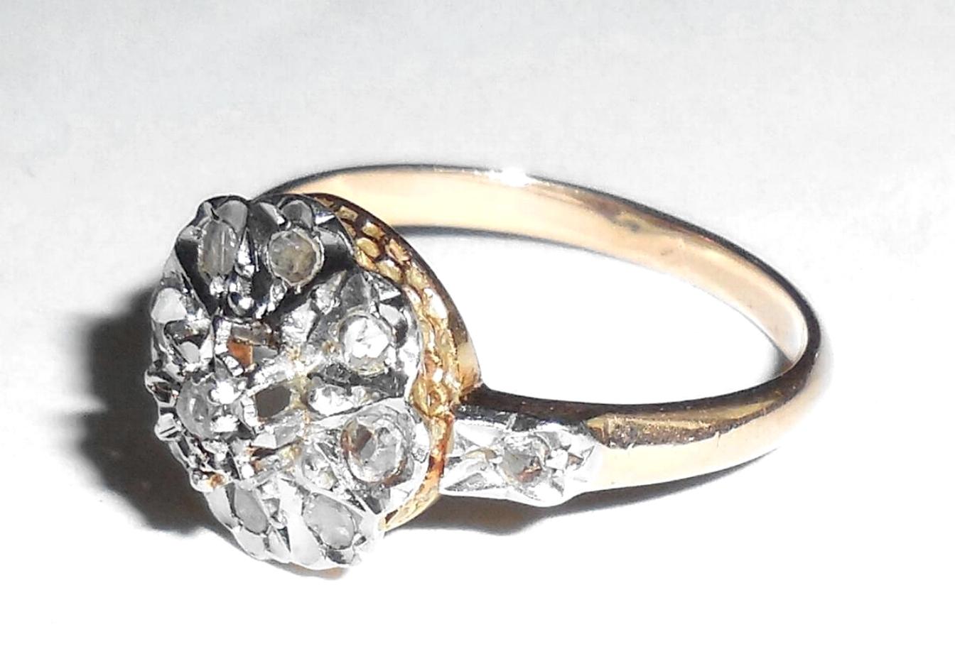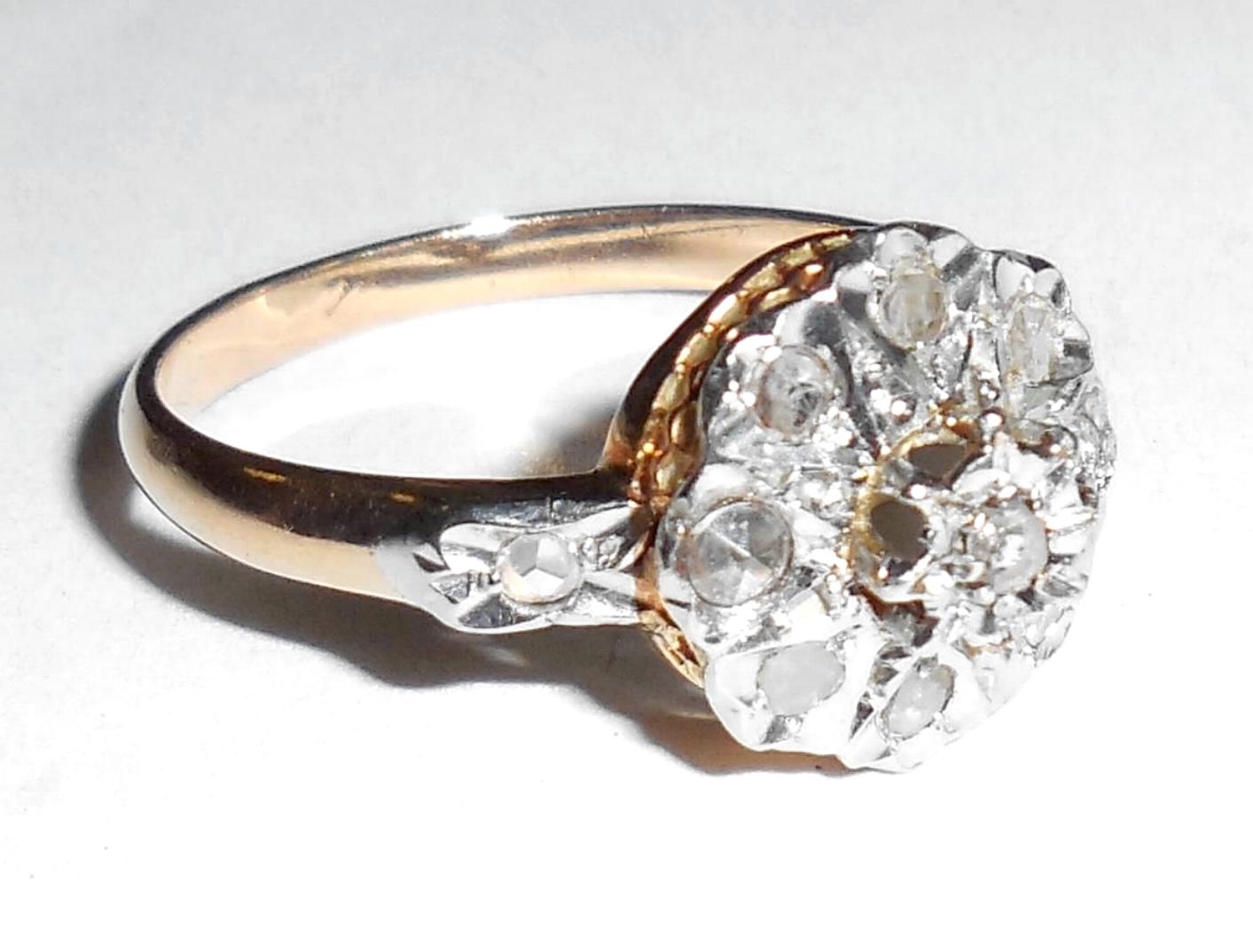 Antique Victorian Edwardian 18K Gold and Platinum Rose Cut Diamond Ring Size 7
