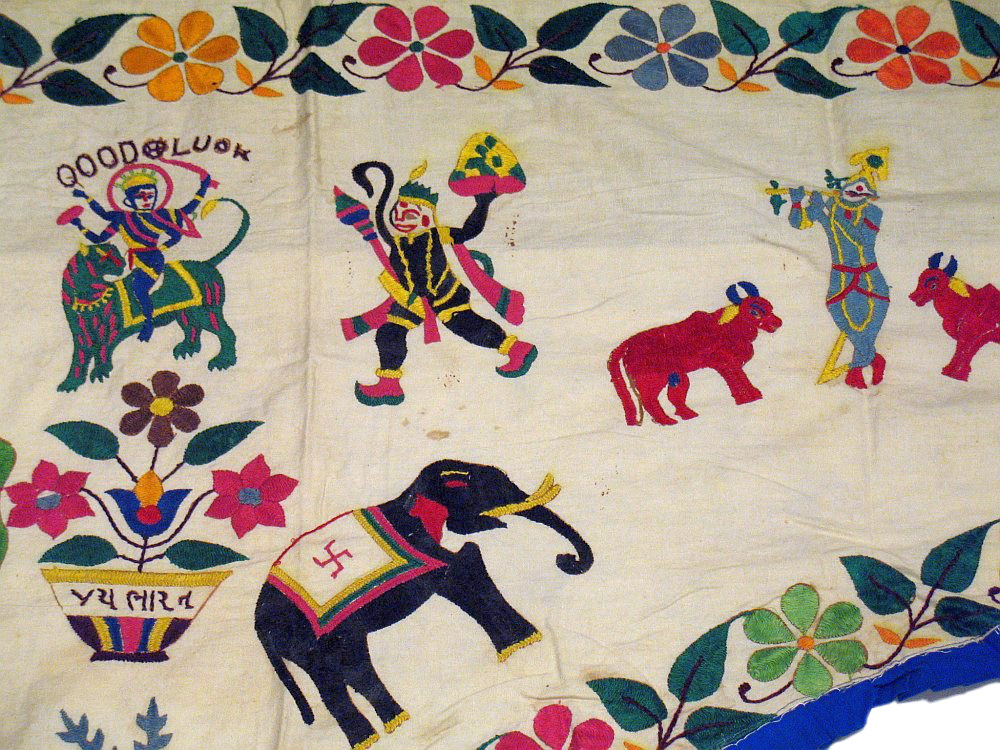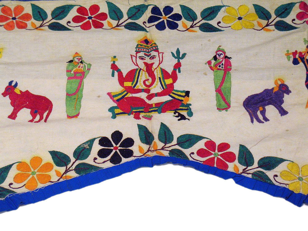 Note: Authentic Vintage Kutch embroidered Gate / Door Topper / Valance - NOT a replica. May have light stains or minor rips.